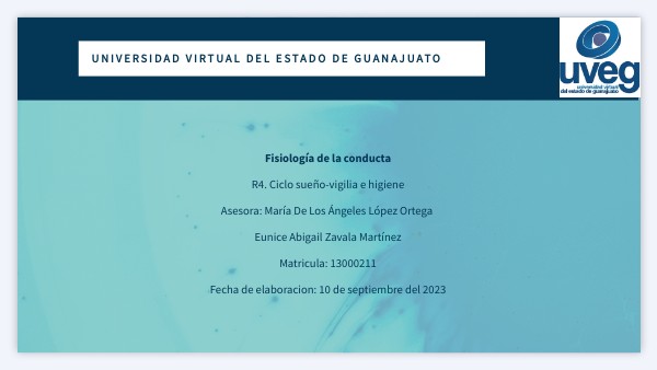 Fisiología de la conducta R4. Ciclo sueño-vigilia e higiene Asesora: María De Los Ángeles López Ortega Eunice Abigail Zavala Martínez Matricula: 13000211 Fecha de elaboracion: 10 de septiembre del 2023
