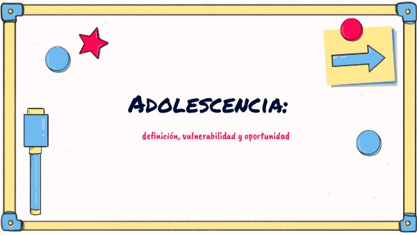 Pero la adolescencia no es solo una etapa de vulnerabilidad sino también de oportunidad, es el tiempo en que es posible contribuir a su desarrollo, a ayudarla a enfrentar los riesgos y las vulnerabilidades, así como prepararlos para que sean capaces de desarrollar sus potencialidades.