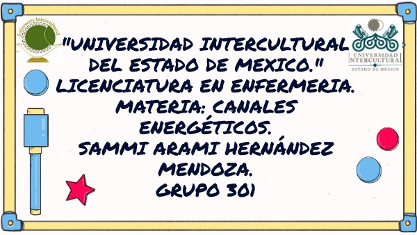 "UNIVERSIDAD INTERCULTURAL DEL ESTADO DE MEXICO."LICENCIATURA EN ENFERMERIA. MATERIA: CANALES ENERGÉTICOS. SAMMI ARAMI HERNÁNDEZ MENDOZA. GRUPO 301