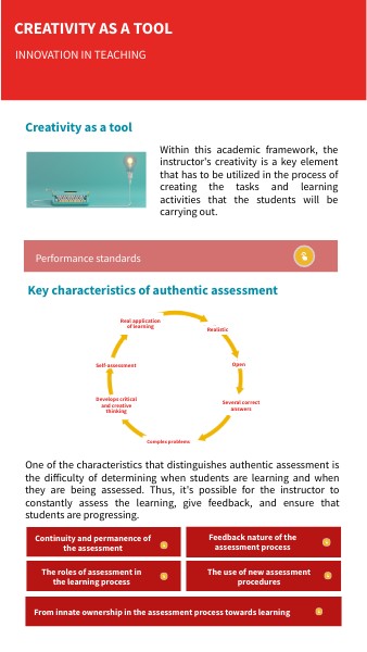 Within this academic framework, the instructor's creativity is a key element that has to be utilized in the process of creating the tasks and learning activities that the students will be carrying out.