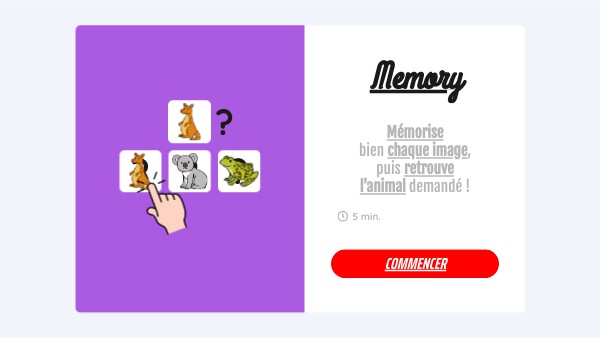 Mémorise bien chaque image, puis retrouve l'animal demandé !