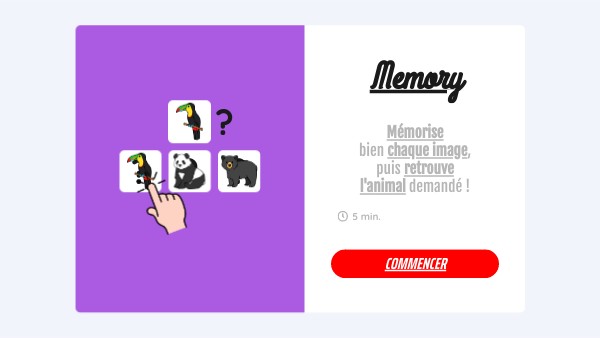 Mémorise bien chaque image, puis retrouve l'animal demandé !