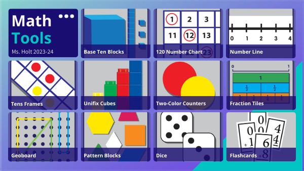 This resource contains a variety of virtual math tools. If you have any questions and/or feedback to share, please reach out to Ms. Holt. Thank you! :)