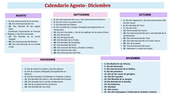 - 9: Día mundial de la arepa ( festejado principalmenten en Venezuela).