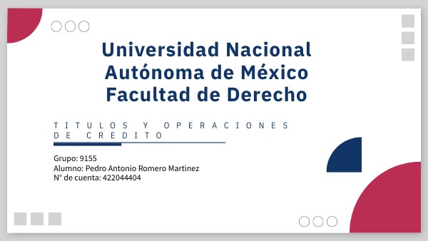 Los títulos de crédito son documentos que representan un derecho patrimonial y suelen circular en el comercio como medio de transferir dicho derecho de manera más eficiente. Las cuatro características esenciales de los títulos de crédito son: incorporación, legitimación, literalidad y autonomía.