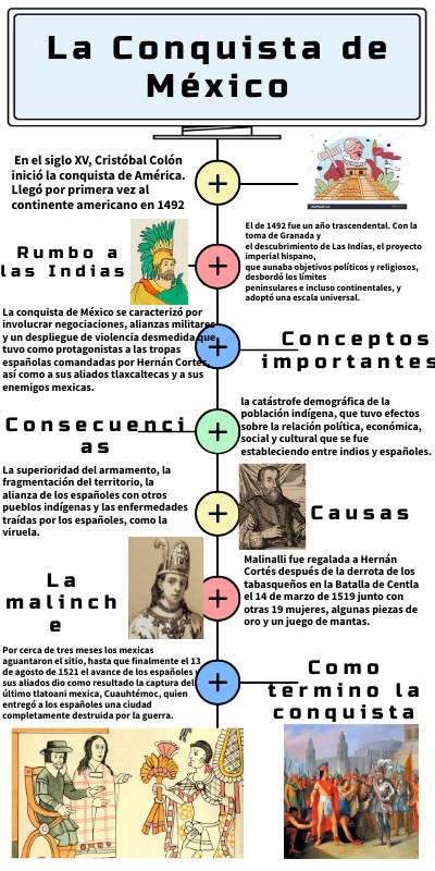 La conquista de México se caracterizó por involucrar negociaciones, alianzas militares y un despliegue de violencia desmedida que tuvo como protagonistas a las tropas españolas comandadas por Hernán Cortés, así como a sus aliados tlaxcaltecas y a sus enemigos mexicas.