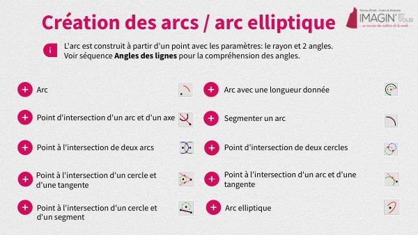 L'arc est construit à partir d'un point avec les paramètres: le rayon et 2 angles. Voir séquence Angles des lignes pour la compréhension des angles.