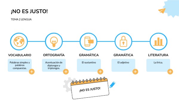 Palabras simples y compuestas, acentuación de diptongos y triptongos, el sustantivo y sus clases, el adjetivo y sus grados, la lírica.