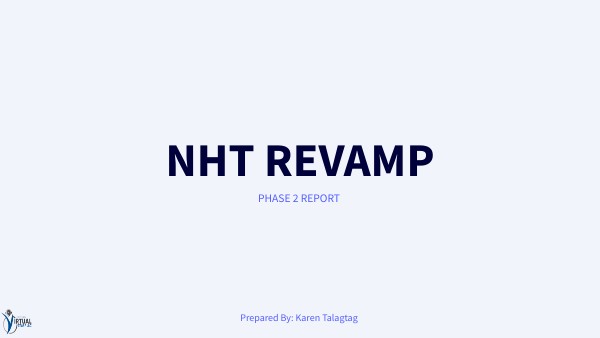 This report provides a summary of the NHT Revamp Project outcome. The NHT Revamp Project was designed to reduce placement duration, increase sales and increase the number of available candidates for pairing.