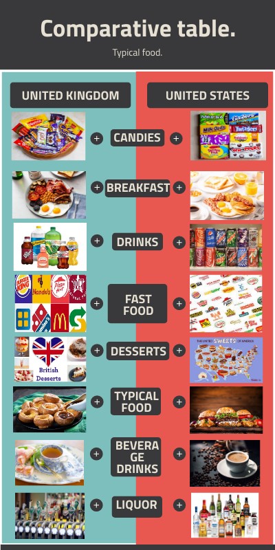 In the United Kingdom, breakfasts are usually more salty, food such as fried eggs, bacon, sausages and accompanied by chips or mashed potatoes.