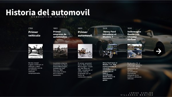 El primer automóvil fue el "Benz Patent-Motorwagen" creado por Karl Benz en 1885, considerado el primer vehículo propulsado por un motor de combustión interna.