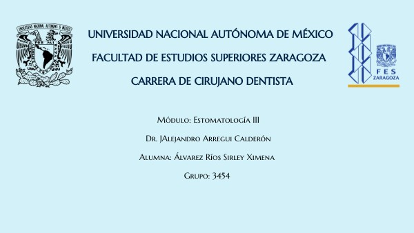 Módulo: Estomatología III Dr. JAlejandro Arregui Calderón Alumna: Álvarez Ríos Sirley Ximena Grupo: 3454
