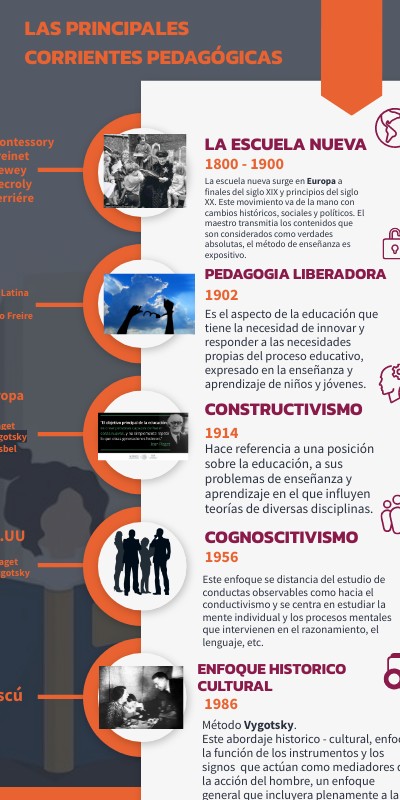 La escuela nueva surge en Europa a finales del siglo XIX y principios del siglo XX. Este movimiento va de la mano con cambios históricos, sociales y políticos. El maestro transmitia los contenidos que son considerados como verdades absolutas, el método de enseñanza es expositivo.