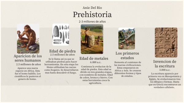 Comienza la evolucion de la edad de piedra. Esta edad se divide en tres grandes etapas, con nombres de metales. Edad de cobre, bronce y hierro. Con estas herraientas crece la agricultura.