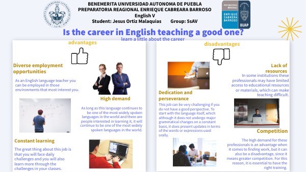 BENEMERITA UNIVERSIDAD AUTONOMA DE PUEBLAPREPARATORIA REAGIONAL ENRIEQUE CABREARA BARROSO English V Student: Jesus Ortiz Malaquias Group: 5sAV