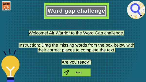 Welcome! Air Warrior to the Word Gap challenge. Instruction: Drag the missing words from the box below with their correct places to complete the text. Are you ready?