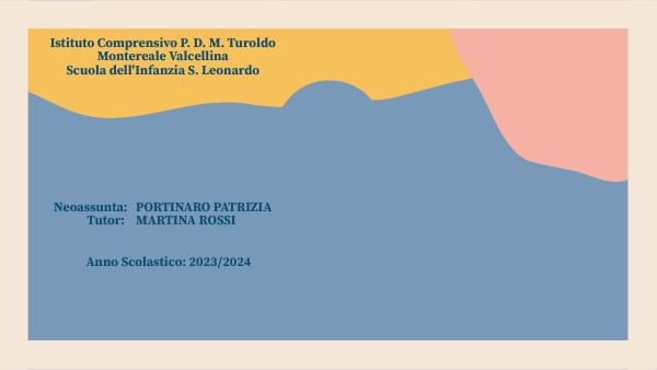 Istituto Comprensivo P. D. M. Turoldo Montereale Valcellina Scuola dell'Infanzia S. Leonardo Neoassunta: PORTINARO PATRIZIA Tutor: MARTINA ROSSI Anno Scolastico: 2023/2024