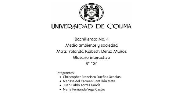 Bachillerato No. 4 Medio ambiente y sociedad Mtra: Yolanda Kiabeth Deniz Muñoz Glosario interactivo 3° "G"