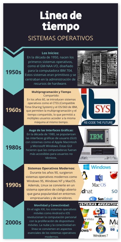 Los Inicios: En la década de 1950, nacen los primeros sistemas operativos, como el GM-NAA I/O, diseñado para la computadora IBM 704. Estos sistemas eran primitivos y se centraban en la administración de recursos de hardware.