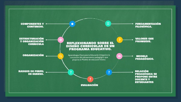 - El primero de los cuales es esta introducción. - El segundo apartado expone los fines de la educación: cómo y por qué la escuela de educación básica debe evolucionar para responder a los retos de la sociedad actual, también incluye una descripción de los medios para alcanzar tales fines. - El tercer apartado caracteriza a la educación básica, sus niveles, etapas y perfil de egreso. - El cuarto apartado explica la lógica y los fundamentos de la nueva organización curricular en tres componentes, dos de naturaleza obligatoria y con propósitos comunes para todas las escuelas, y un tercero, autonomía curricular, y el mapa curricular con la distribución de asignaturas, áreas y horas 15 lectivas asignadas a cada espacio curricular.
