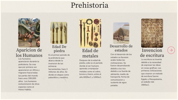 Los humanos aparecieron durante la prehistoria. Se cree que por primera vez aparecieron en Africa y migraron hacia todas las partes del mundo hace unos 200,000 años. Los humanos evolucionaron de otras especies como el Homo Habilis.