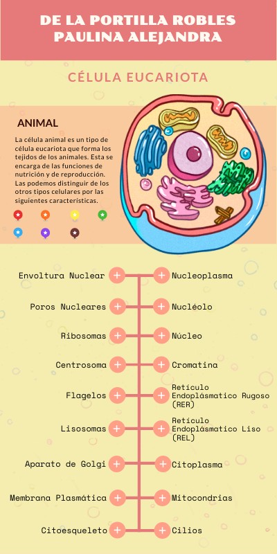 La célula animal es un tipo de célula eucariota que forma los tejidos de los animales. Esta se encarga de las funciones de nutrición y de reproducción. Las podemos distinguir de los otros tipos celulares por las siguientes características.