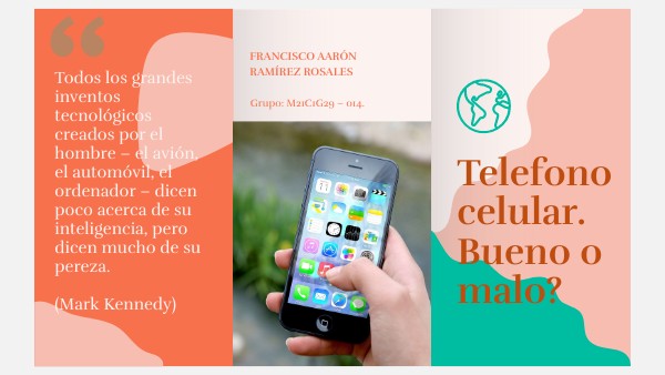 1.- Comunicarte en cualquier parte del mundo.2.- Poder tener mucha información en la palma de tu mano 3.- Poder realizar tareas o tomas clases de la escuela desde el celular. 4.- Tener aplicaciones de banca movil para la modificación de los mismos. 5.- Tener multifunciones en un solo aparato (camara, calculadora, agenda, etc.)