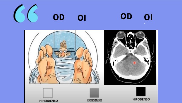 TOMOGRAFIA COMPUTADA CORTE AXIAL, VENTANA CEREBRAL: SE OBSERVA UNA IMAGEN HIPODENSA EN REGION PARIETAL IZQUIERDA, QUE NO DESPLAZA LINEA MEDIA, QUE NO COLAPSA VENTRICULOS, COMPATIBLE CON UN EVC DE TIPO ISQUEMICO CORRESPONDIENTE AL TERRITORIO DE LA ACM IZQUIERDA
