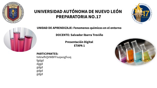 UNIDAD DE APRENDIZAJE: Fenomenos quimicos en el entorno DOCENTE: Salvador Ibarra Treviño Presentación Digital ETAPA 1