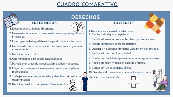 1. Recibir atención médica adecuada.2. Recibir trato digno y respetuoso. 3. Recibir información suficiente, clara, oportuna y veraz. 4. Decidir libremente sobre su atención. 5. Otorgar o no el consentimiento válidamente informado. 6. Ser tratado con confidencialidad. 7. Contar con facilidades para obtener una segunda opinión. 8. Recibir atención médica en caso de urgencia. 9. Contar con un expediente clínico. 10. Ser atendido cuando exista inconformidad por la atención médica recibida