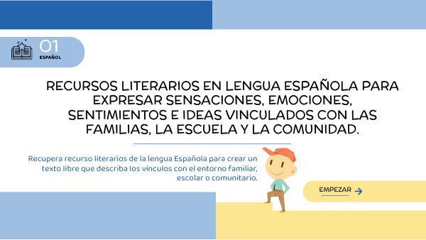 Recursos literarios en lengua Española para expresar sensaciones, emociones, sentimientos e ideas vinculados con las familias, la escuela y la comunidad.