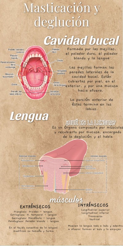La digestión mecánica en la boca es el resultado de la masticación, donde se forma el “Bolo” [un “mix” de comida triturada por los dientes con la saliva.]