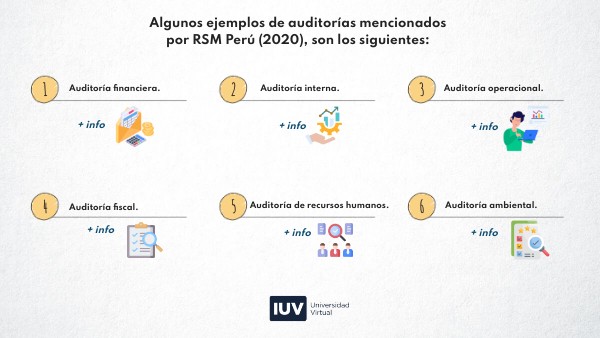 Algunos ejemplos de auditorías mencionados por RSM Perú (2020), son los siguientes: