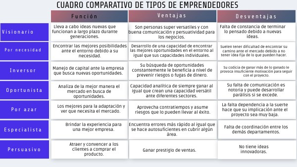 CUADRO COMPARATIVO DE TIPOS DE EMPRENDEDORES
