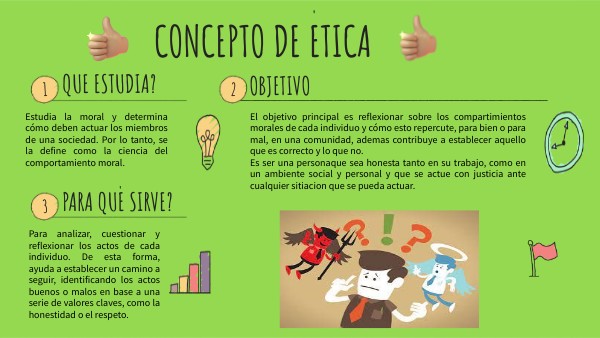 El objetivo principal es reflexionar sobre los compartimientos morales de cada individuo y cómo esto repercute, para bien o para mal, en una comunidad, ademas contribuye a establecer aquello que es correcto y lo que no.Es ser una personaque sea honesta tanto en su trabajo, como en un ambiente social y personal y que se actue con justicia ante cualquier sitiacion que se pueda actuar.