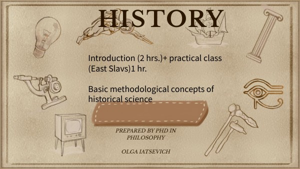 Introduction (2 hrs.)+ practical class (East Slavs)1 hr.Basic methodological concepts of historical science