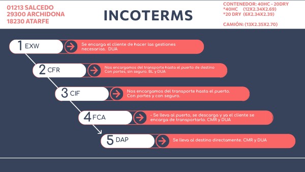 - Se lleva al puerto, se descarga y ya el cliente se encarga de transportarlo. CMR y DUA