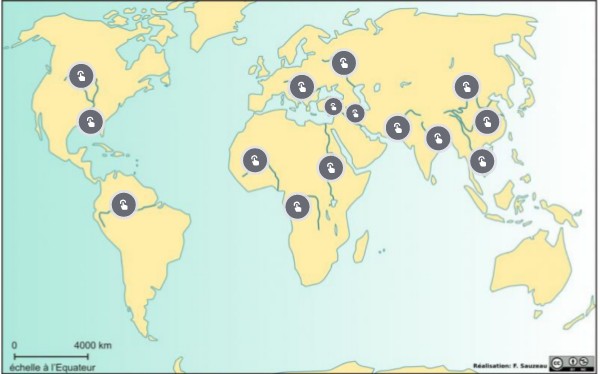 Géo 14 - Sur une carte du monde, je situe des fleuves.