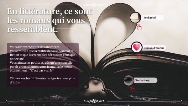 Vous adorez raconter des anecdotes. Vous trouvez que la réalité dépasse souvent la fiction et que les véritables héros sont ceux qui ont existé. Vous aimez les potins et, dès qu'une nouvelle paraît croustillantes, vous formulez le même étonnement : "C'est pas vrai !?" Cliquez sur les différentes catégories pour plus d'infos !