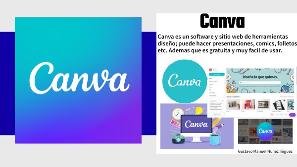 Canva es un software y sitio web de herramientas diseño; puede hacer presentaciones, comics, folletos etc. Ademas que es gratuita y muy facil de usar.