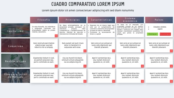 ¿Qué es el Capitalismo? (s/f). Filosofia.net. https://www.filosofia.net/materiales/sofiafilia/fyc/fyc_4_13.html Bedoya, M. (2015). La filosofía neoliberal y su visión del ser humano y de la sociedad. SlideShare. https://es.slideshare.net/d1305/la-filosofa-neoliberal-y-su-visin-del-ser-humano-y-de-la-sociedad Capitalismo. (s/f). Filosofia.org. Recuperado el 23 de agosto de 2023, de https://www.filosofia.org/enc/ros/capital.htm Comunismo. (2023). Significados. https://www.significados.com/comunismo/ Etecé. (2017). Neoliberalismo. Enciclopedia humanidades. https://humanidades.com/neoliberalismo/ Etecé. (2023). Capitalismo. Enciclopedia humanidades. https://humanidades.com/neoliberalismo/ Francisco, J. (2020). Ventajas y desventajas del capitalismo. Economipedia. https://economipedia.com/definiciones/ventajas-y-desventajas-del-capitalismo.html Guzmán, M. (2015). Socialismo, neoliberalismo y comunismo. SlideShare. [Diapositiva PowerPoint]. https://es.slideshare.net/maetzuyh3S/socialismo-neoliberalismo-y-comunismo Jahan, S., Saber, A. (2015). ¿Qué es el capitalismo?. [Archivo PDF]. https://www.imf.org/external/pubs/ft/fandd/spa/2015/06/pdf/basics.pdf Jesús, S. (2022).Comunismo y Capitalismo: en qué se diferencian. Economía 3. https://economia3.com/economia-capitalista-economia-comunista-diferencias/ Jesús, S. (2023). Países comunistas: ¿Cuáles son actualmente y qué características tienen?. Economía 3. https://economia3.com/paises-comunistas-cuales-son/ Jesús, S. (2023). Qué es el comunismo y cuáles son sus características principales. Economía 3. https://economia3.com/que-es-comunismo Millones, M. (2013). Neoliberalismo en América Latina: una interpretación desde la ideología en Žižek. SciELo. https://www.scielo.org.mx/scielo.php?script=sci_arttext&pid=S0187-01732013000200002 Palmera, C. (s.f). Cuadro Comparativo Comunismo y Socialismo. Scribd. https://es.scribd.com/document/532301961/CUADRO-COMPARATIVO-COMUNISMO-Y-SOCIALISMO# Profes Recursos. (2023). Características del Capitalismo. Proferecursos.com. https://www.proferecursos.com/caracteristicas-del-capitalismo/ Resico, M. (s.f). 1.13. ¿Qué es la Economía Social de Mercado?. [Archivo PDF]. https://www.kas.de/c/document_library/get_file?uuid=5b2734a1-79fe-bba5-e0d6-3dfd307374f8&groupId=252038 Rivadeneira, J. (2009). Economía social de mercado. Konrad Adenauer Stiftung. [Archivo PDF]. https://biblio.flacsoandes.edu.ec/libros/digital/57191.pdf Significados. (2019). 13 características del comunismo. Significados. https://www.significados.com/caracteristicas-del-comunismo/ Software DELSOL. (2021). Comunismo. Sdelsol.com. https://www.sdelsol.com/glosario/comunismo/ Solimo, A. (2014). Economic Elites, Crises, and Democracy. Oxford University Press. https://books.google.com.mx/books?id=4YodBAAAQBAJ&lpg=PP1&ots=3LOKLUl9Ek&dq=Economic%20elites%2C%20crises%2C%20and%20austerity%20in%2021st%20century%20capitalism%2Bpdf&lr&hl=es&pg=PA3#v=onepage&q&f=false Ventajas. (2022). ▷ Ventajas y Desventajas del Neoliberalismo. Ventajas. https://ventajas.org/neoliberalismo/ Ventajas y desventajas del neoliberalismo. (2018). El Mundo Infinito. https://elmundoinfinito.com/ventajas-desventajas-neoliberalismo/ Westreicher, G. (2020). Economía social de mercado. Economipedia. https://economipedia.com/definiciones/economia-social-de-mercado.html
