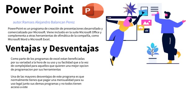 PowerPoint es un programa de creación de presentaciones desarrollado y comercializado por Microsoft. Viene incluido en la suite Microsoft Office y complementa a otras herramientas de ofimática de la compañía, como Microsoft Word o Microsoft Excel.
