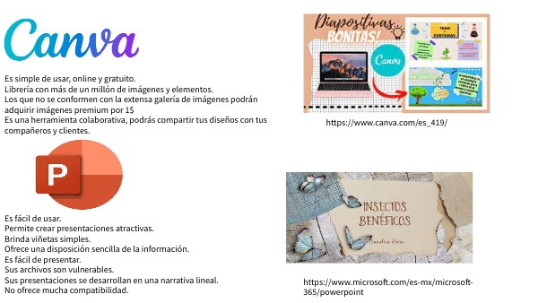 Es fácil de usar. Permite crear presentaciones atractivas. Brinda viñetas simples. Ofrece una disposición sencilla de la información. Es fácil de presentar. Sus archivos son vulnerables. Sus presentaciones se desarrollan en una narrativa lineal. No ofrece mucha compatibilidad.