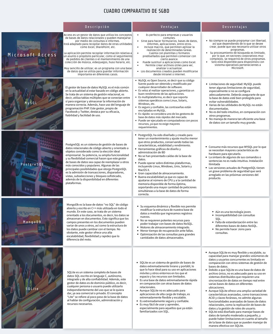 CUADRO COMPARATIVO DE SGBD