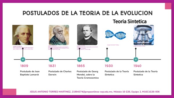 Esto se da al conjunto de los distintos postulados de Lamarck, Darwin, Wallace y Mendel basándose en el postulado de Darwin de la selección natural y en los estudios de Mendel desde 1930 hasta 1940 que se postula esta teoría. Con 9 postulados