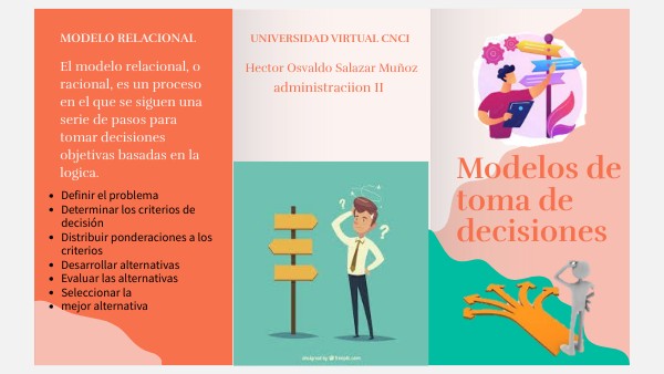 El modelo relacional, o racional, es un proceso en el que se siguen una serie de pasos para tomar decisiones objetivas basadas en la logica.
