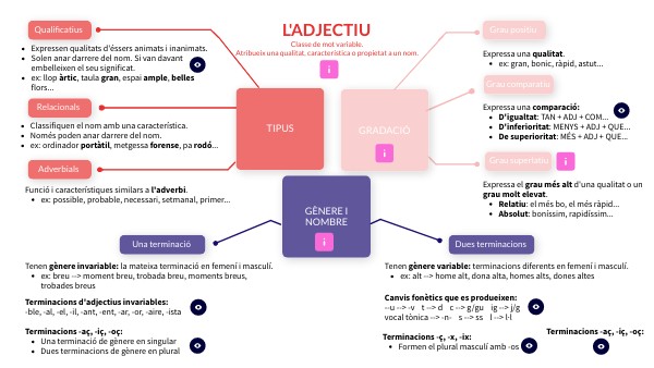 Classe de mot variable.Atribueix una qualitat, característica o propietat a un nom.