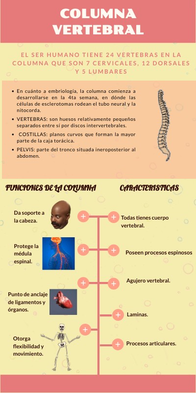 - En cuánto a embriología, la columna comienza a desarrollarse en la 4ta semana, en dónde las células de esclerotomas rodean el tubo neural y la nitocorda.