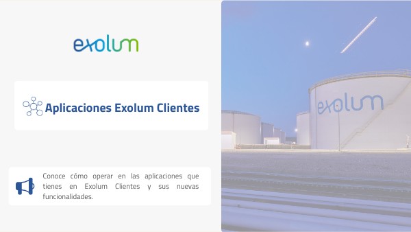 Conoce cómo operar en las aplicaciones que tienes en Exolum Clientes y sus nuevas funcionalidades.