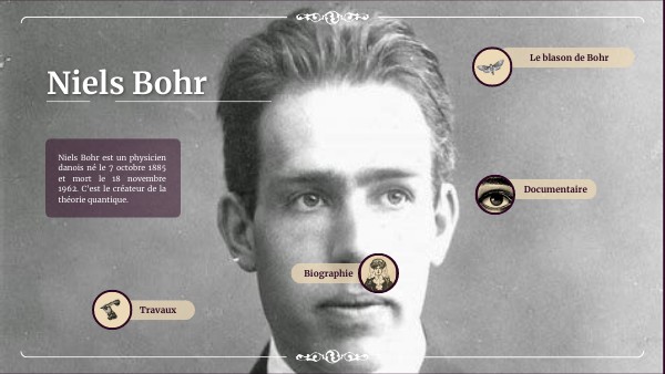 Niels Bohr est un physicien danois né le 7 octobre 1885 et mort le 18 novembre 1962. C'est le créateur de la théorie quantique.